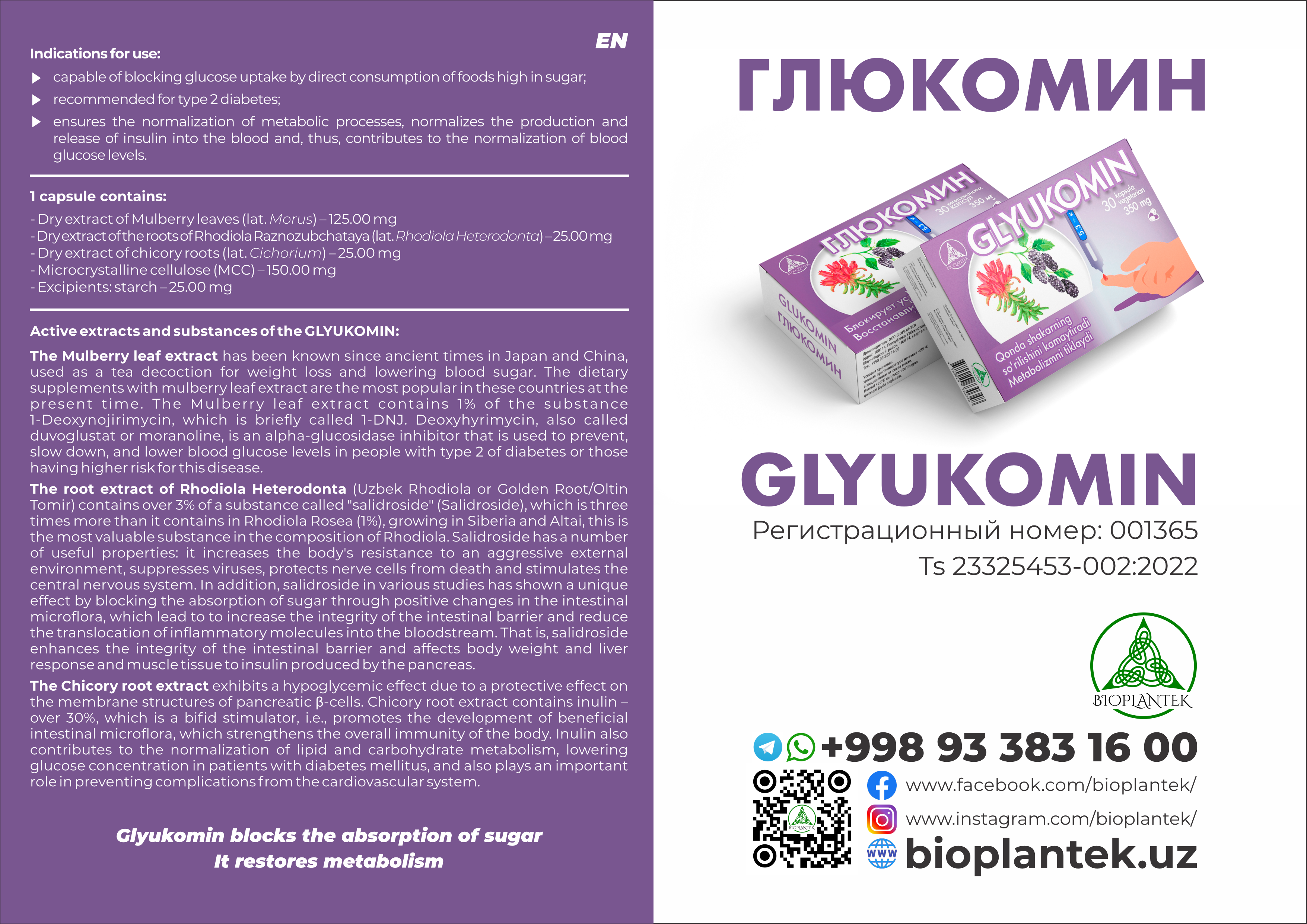 ensures the normalization of metabolic processes, normalizes the production and release of insulin into the blood and, thus, contributes to the normalization of blood glucose levels.