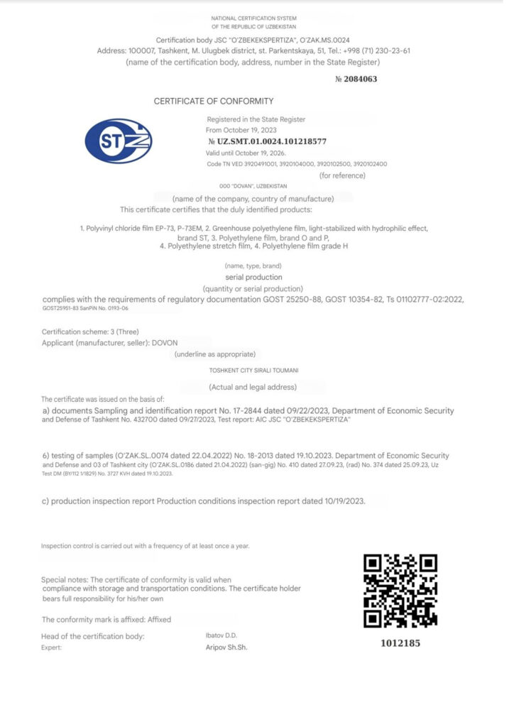 CERTIFICATES: